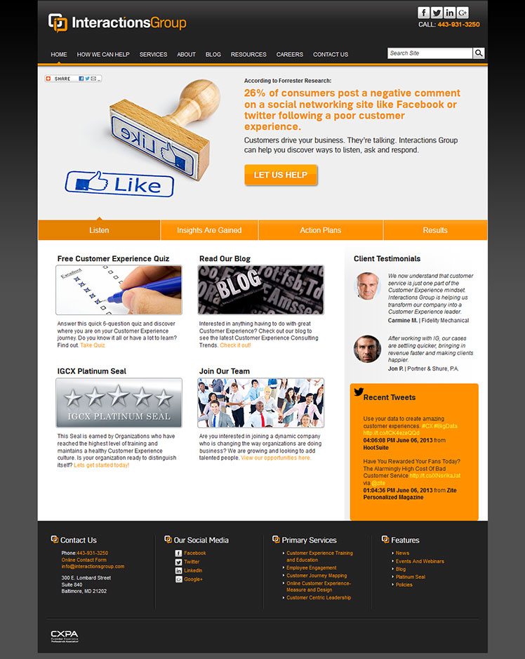 Interactions Group helps their clients understand the importance of retaining their greatest asset: their existing customers and clients. They provide consulting, training, and support to C-level businessmen. Richmond worked closely with a php programmer to design and integrate this website into the WordPress CMS for easy management by the client. Click here to visit the website.